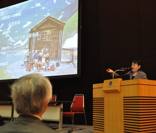 飯田肇(はじめ)さん(富山県・立山カルデラ砂防博物館学芸課長)は、「自然と危険を考える」という面で講演を行った。